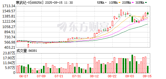 数据宝统计,截至10:38,寒武纪-U成交额100.36亿元,超100亿元。最新股价下跌2.02%,换手率1.66%。上一交易日该股全天成交额为286.95亿元。(数据宝)