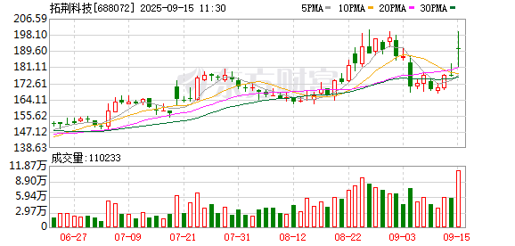 数据宝统计,截至10:43,拓荆科技成交额18.31亿元,创2025年3月7日以来新高。最新股价上涨10.82%,换手率3.47%。上一交易日该股全天成交额为10.09亿元。(数据宝)